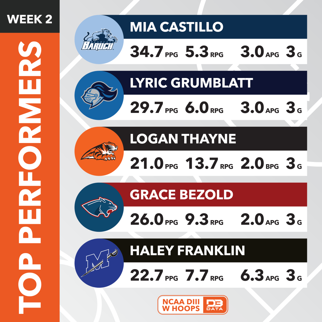 The top players across all of DIII Women’s Hoops in week 2 (Nov. 18-24) of the 2024-25 season.