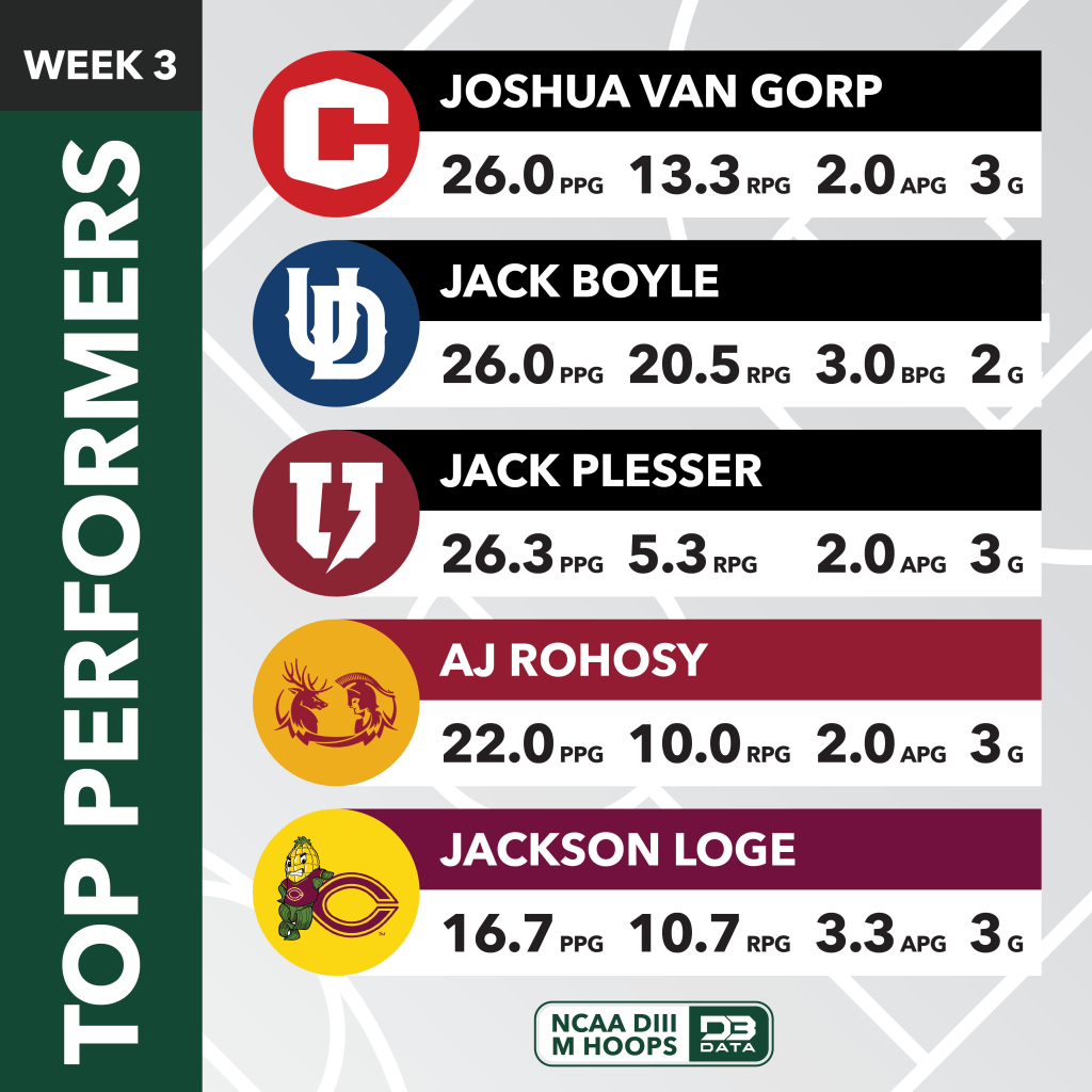 The top players across all of DIII Men’s Hoops in week 3 (Nov. 25-Dec. 1) of the 2024-25 season.