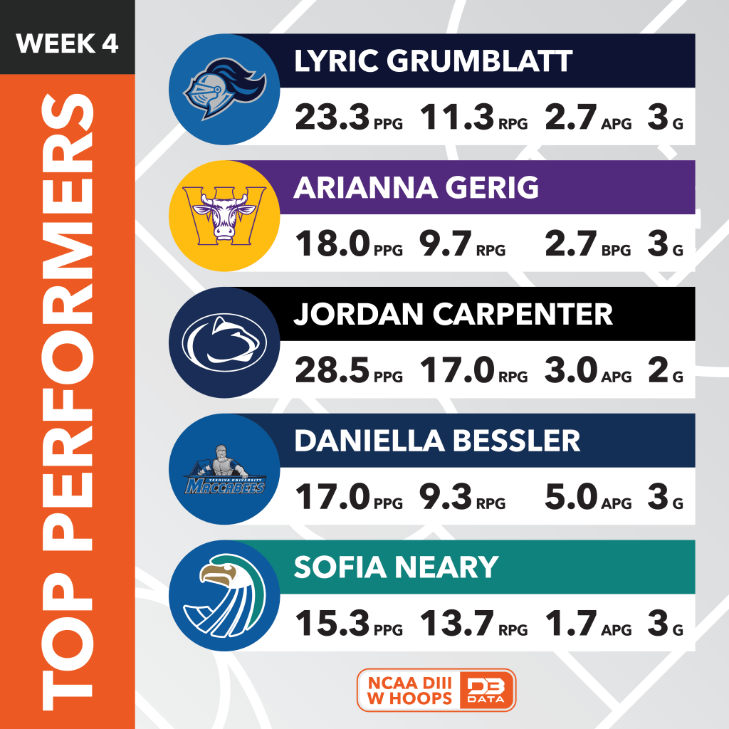 The top players across all of DIII Women’s Hoops in week 4 (Dec. 2-8) of the 2024-25 season.