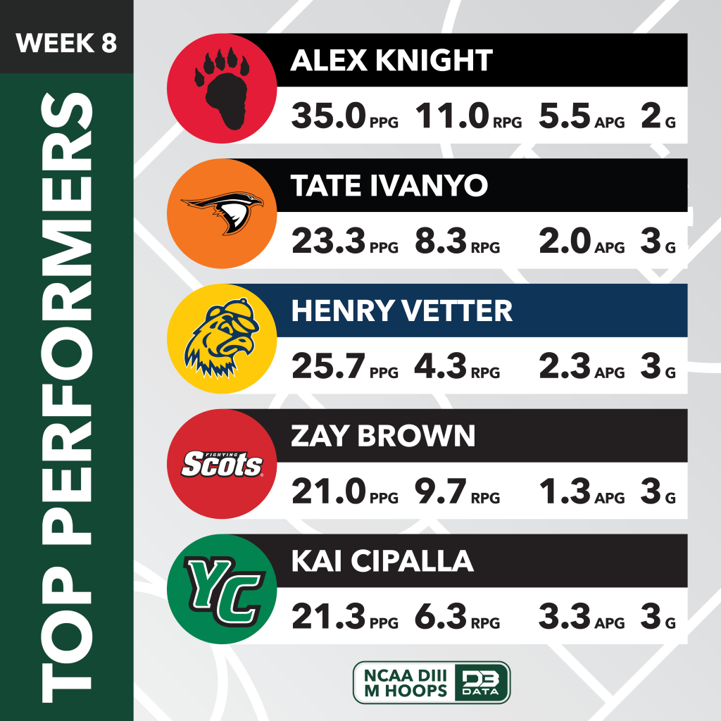 The top players across all of DIII Men’s Hoops in week 8 (Dec. 30-Jan. 5) of the 2024-25 season.