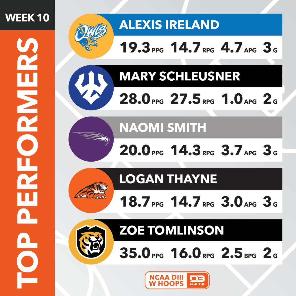 The top players across all of DIII Women’s Hoops in week 10 (Jan. 13-19) of the 2024-25 season.