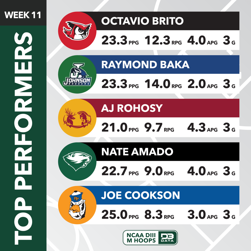 The top players across all of DIII Men’s Hoops in week 11 (Jan. 20-26) of the 2024-25 season.