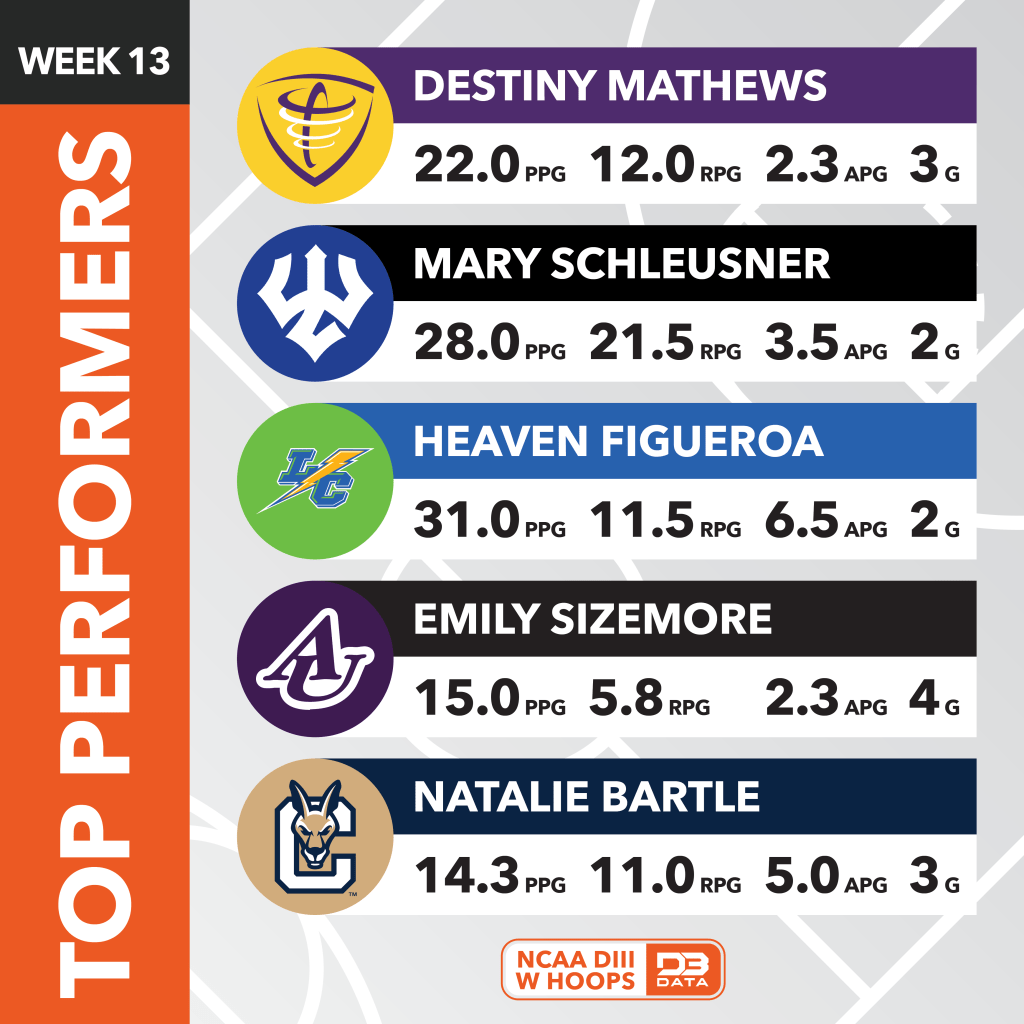 The top players across all of DIII Women’s Hoops in week 13 (Feb. 2-9) of the 2024-25 season.