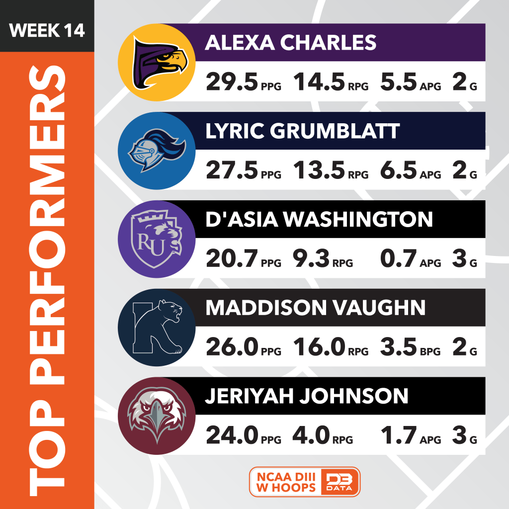 The top players across all of DIII Women’s Hoops in week 14 (Feb. 10-16) of the 2024-25 season.
