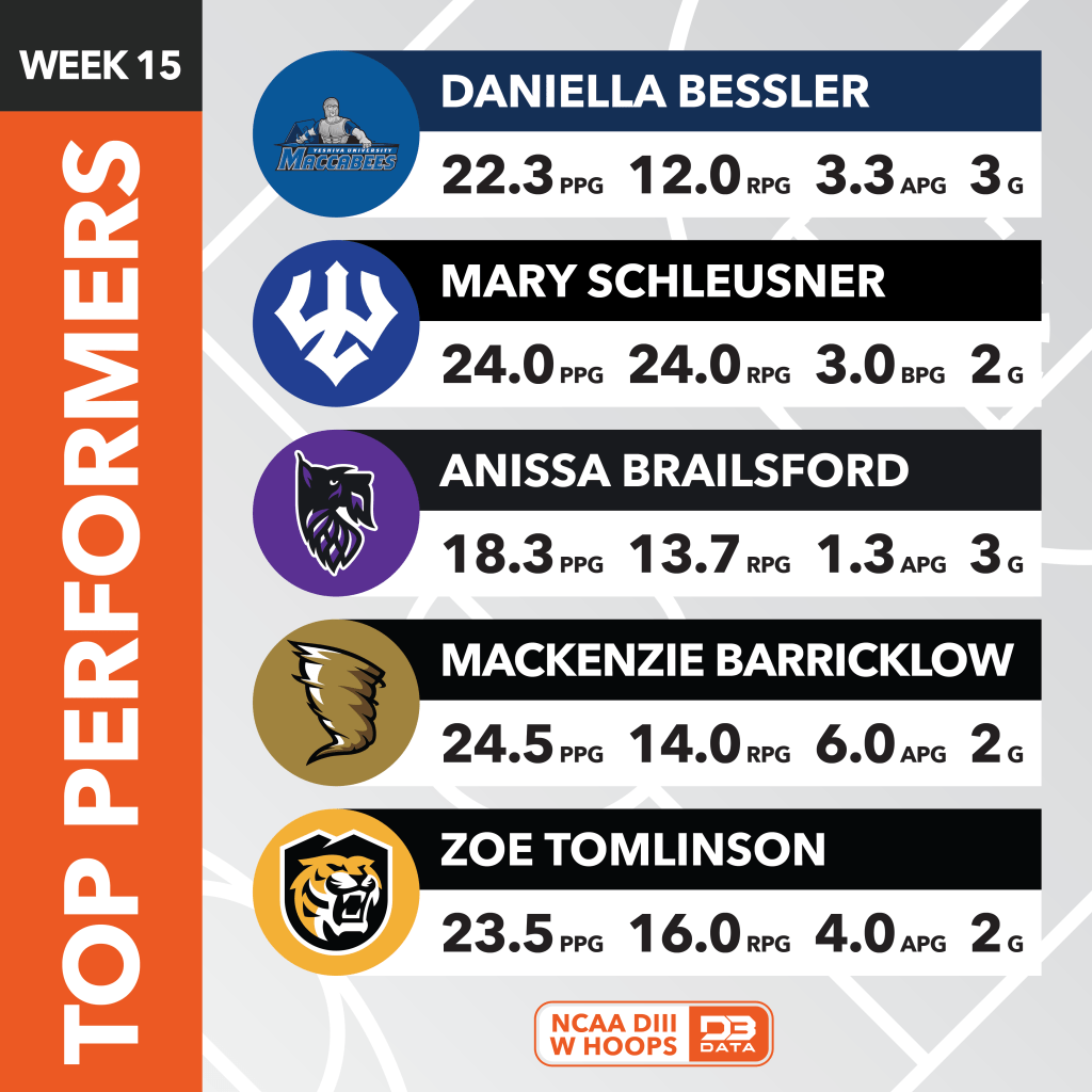 The top players across all of DIII Women’s Hoops in week 15 (Feb. 17-23) of the 2024-25 season.