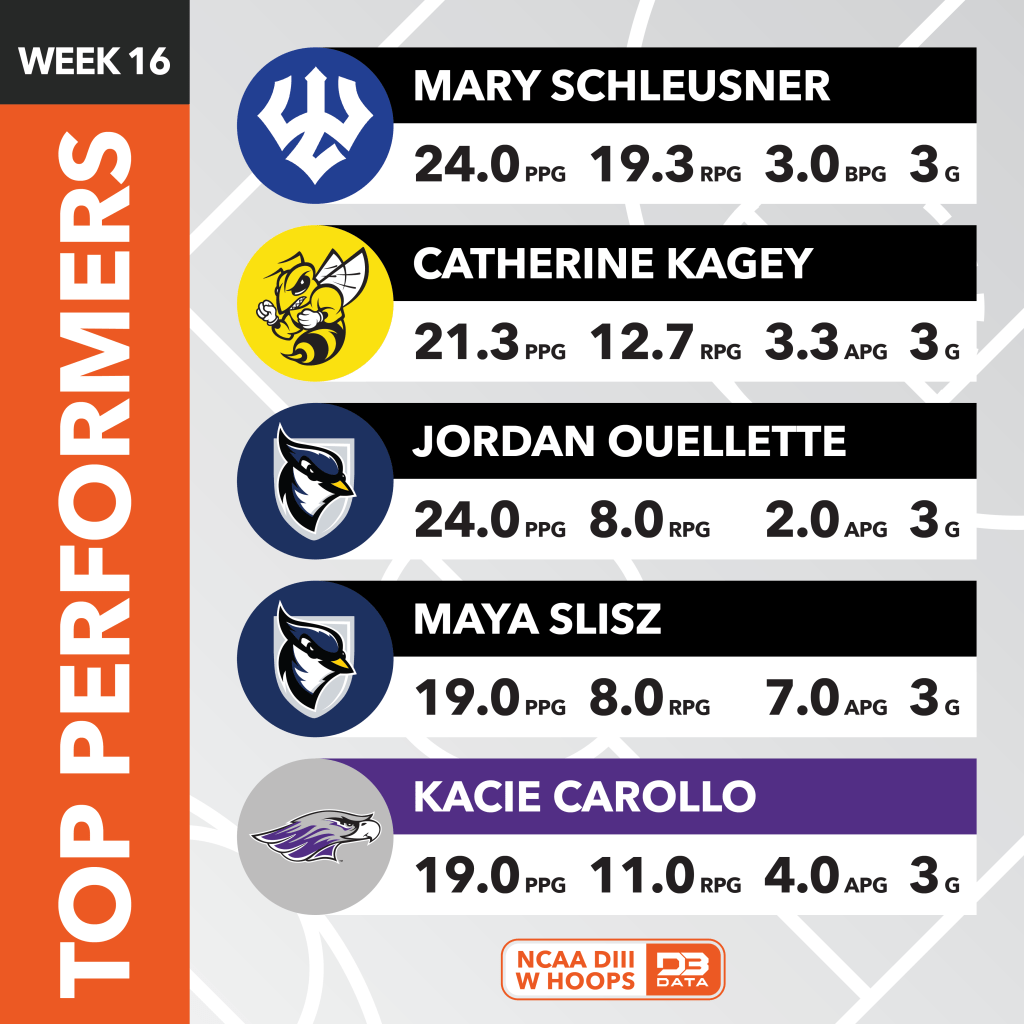 The top players across all of DIII Women’s Hoops in conference tournament week (Feb. 24-March 2) of the 2024-25 season.
