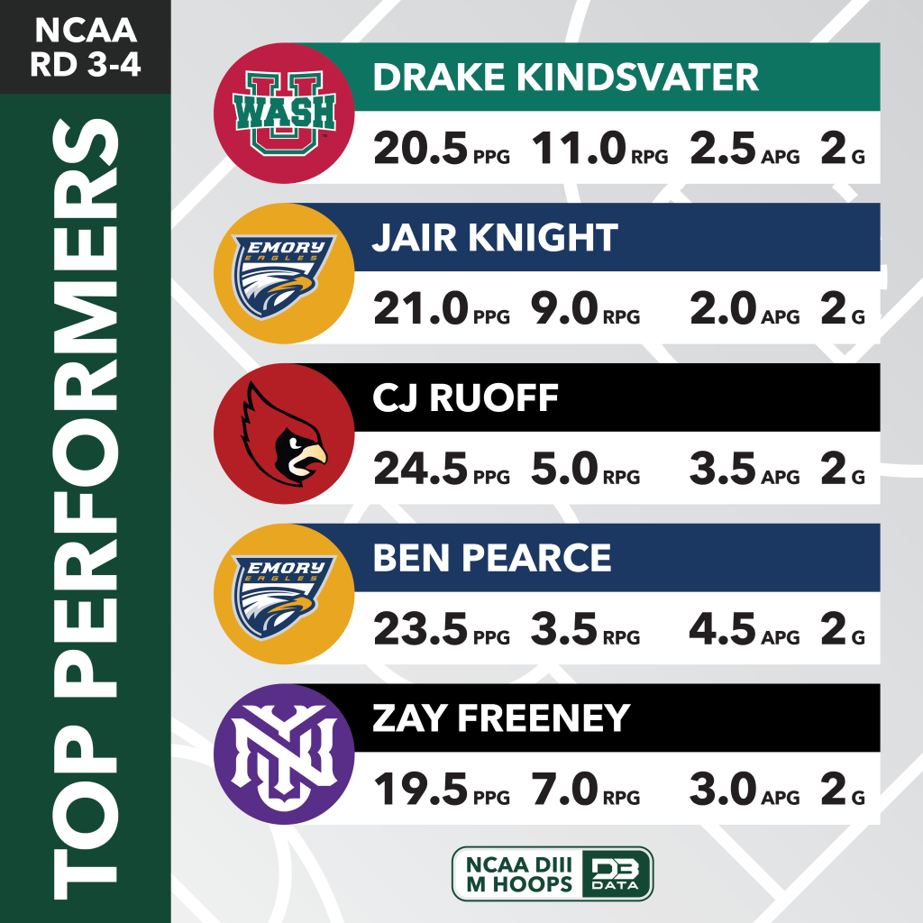 The top players across all of DIII Men’s Hoops in round 3 and 4 of the NCAA Tournament (March 10-16) of the 2024-25 season.