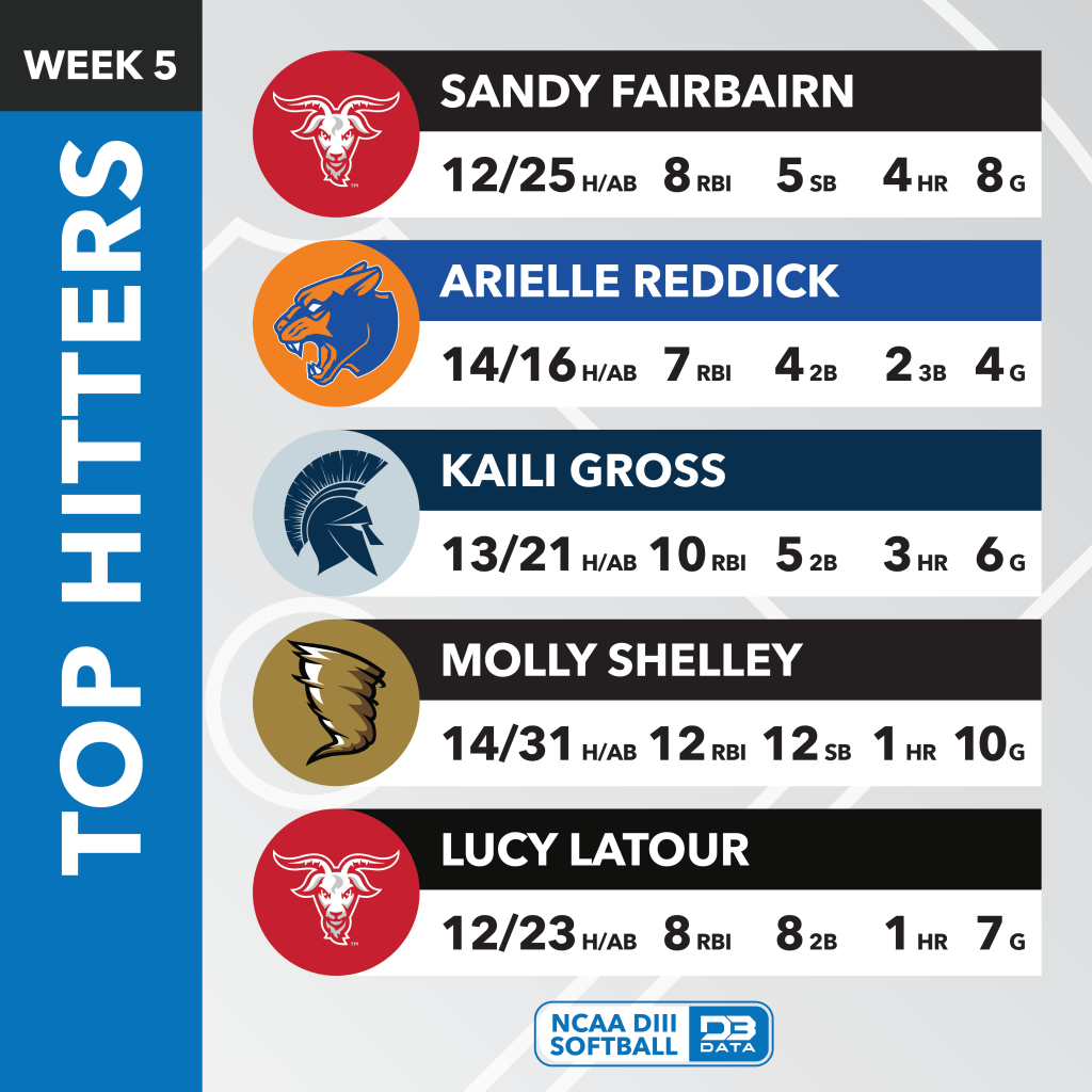 The top players across all of DIII Softball in week 5 (March 10-16) of the 2025 season.