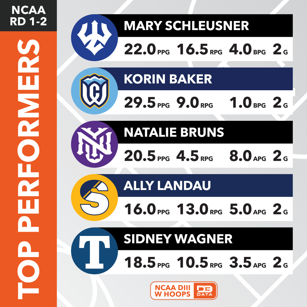 The top players across all of DIII Women’s Hoops in round 3 and 4 of the NCAA Tournament (March 10-16) of the 2024-25 season.
