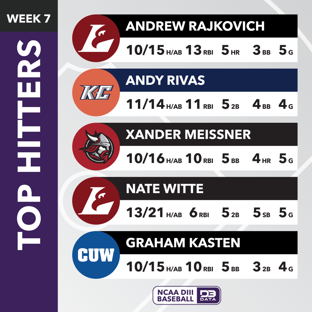 The top players across all of DIII Baseball in week 7 (March 24-30) of the 2025 season.