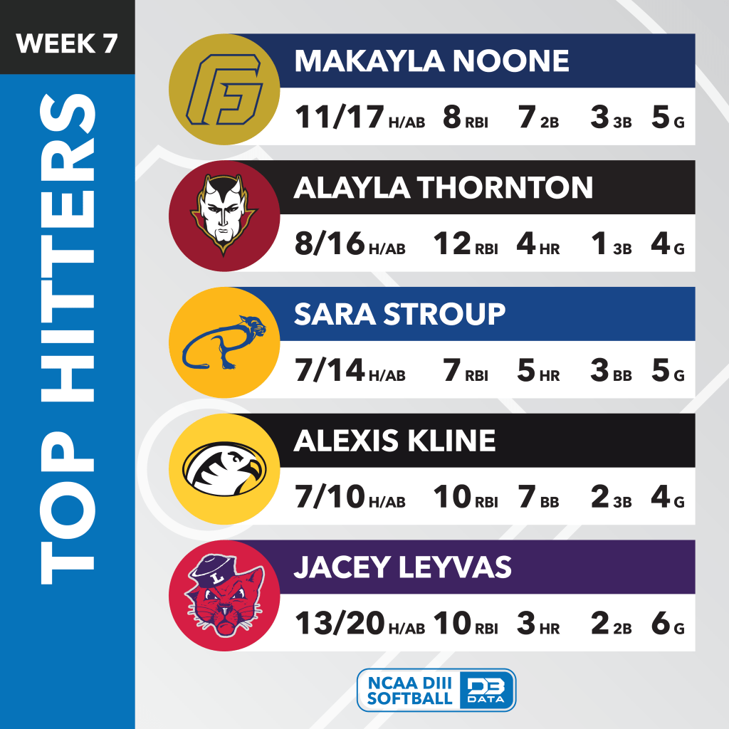 The top players across all of DIII Softball in week 7 (March 24-30) of the 2025 season.