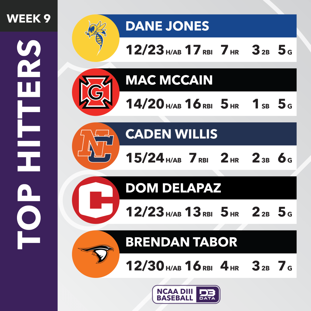 The top players across all of DIII Baseball in week 9 (April 7-13) of the 2025 season.