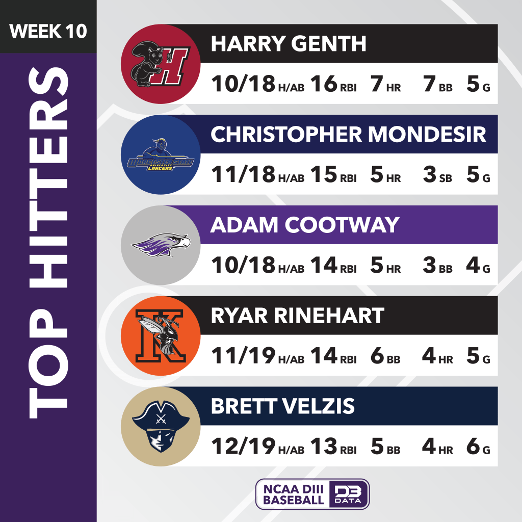 The top players across all of DIII Baseball in week 10 (April 14-20) of the 2025 season.